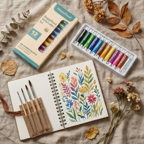 Turn quiet moments into colorful art with HappyCloud watercolor kit.